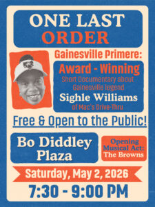 The screening of the film One Last Order, a 20-minute documentary about Mac’s Drive-Thru legend Sighle Williams and her extraordinary last day of work after 37 years, will be shown at Bo Diddley Plaza.